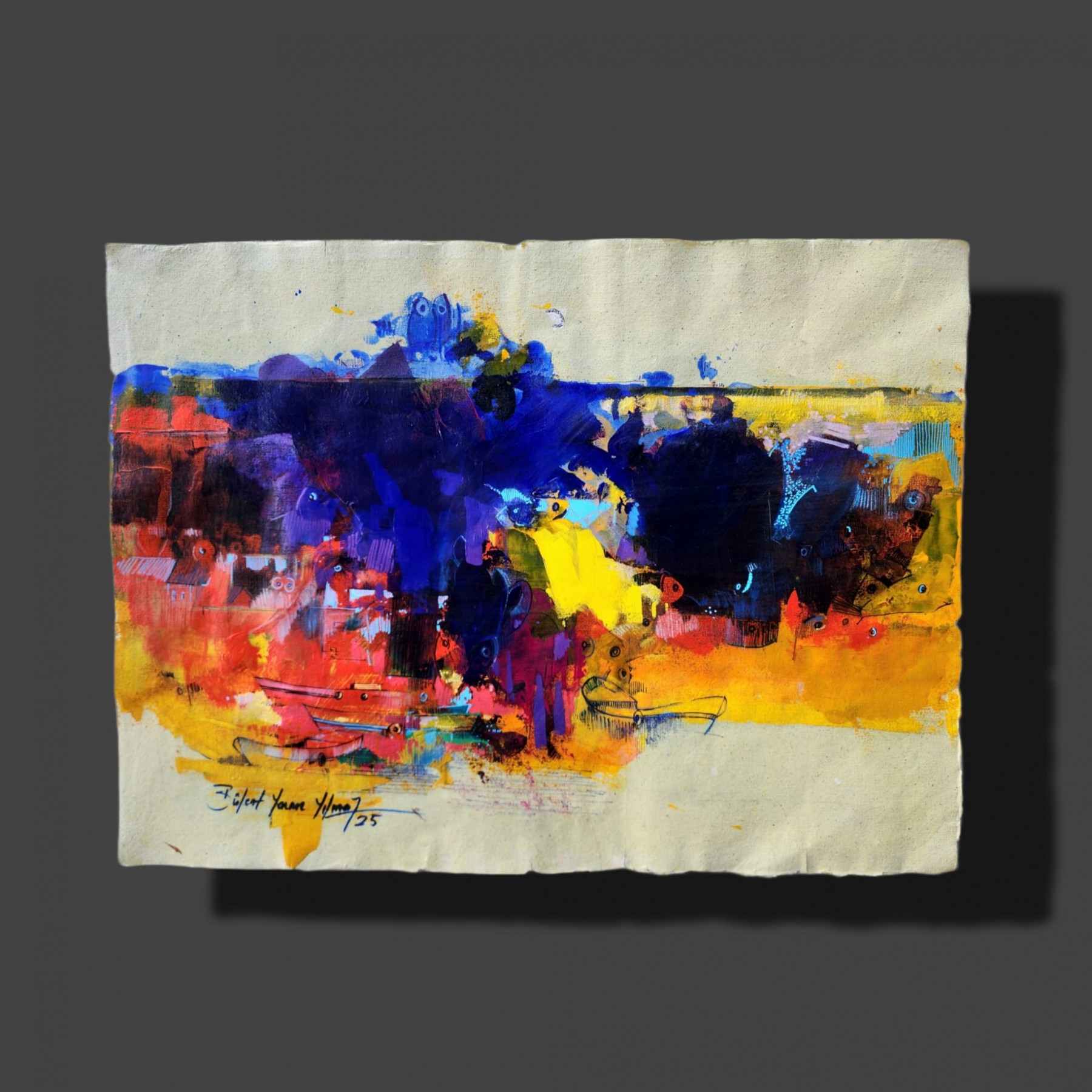 El yapımı kağıt üzerine yağlı boya ve akrilik
