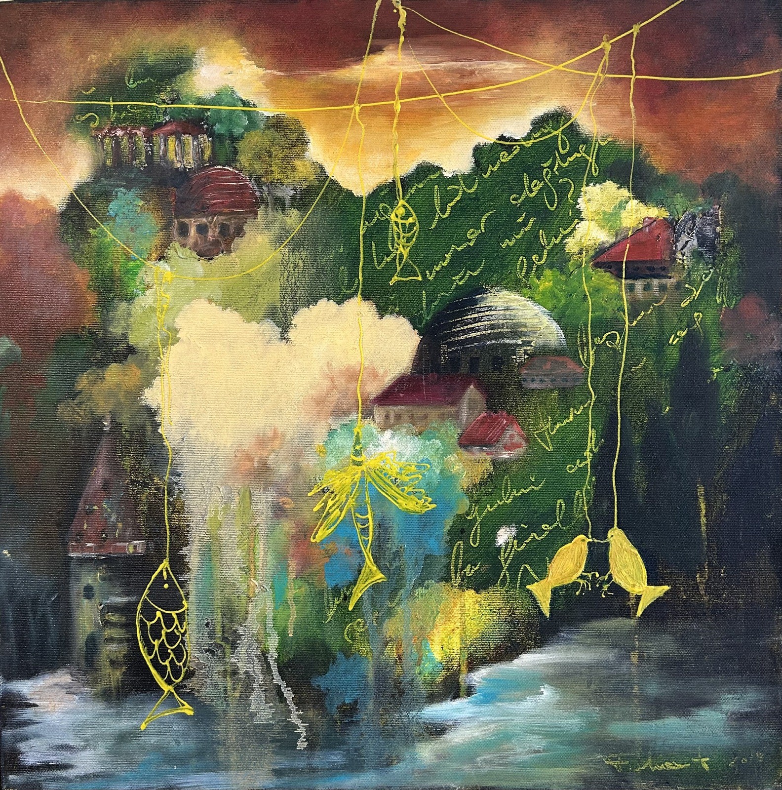Tuval üzerine yağlı boya ve akrilik