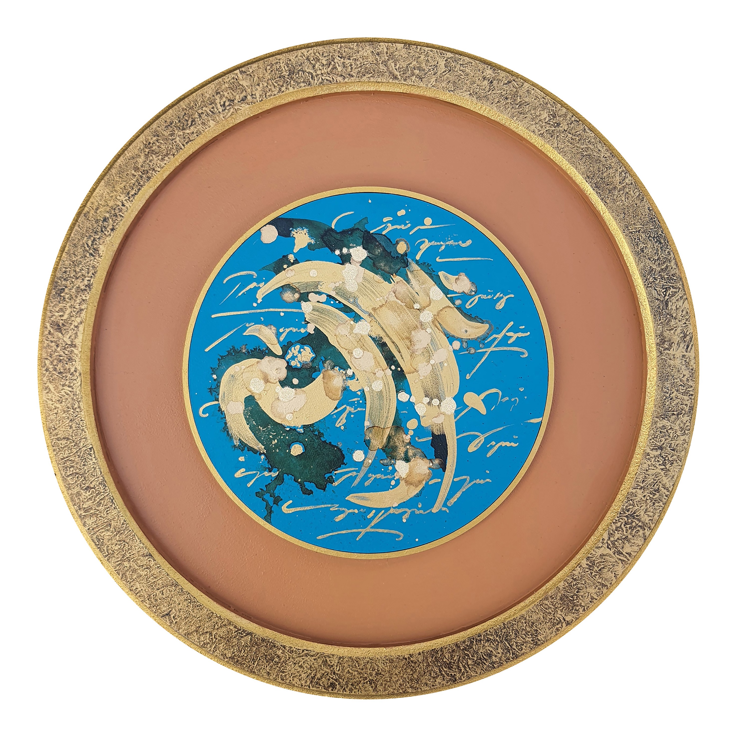 20 cm mdf üzerine akrilik, mürekkep ve toz altın